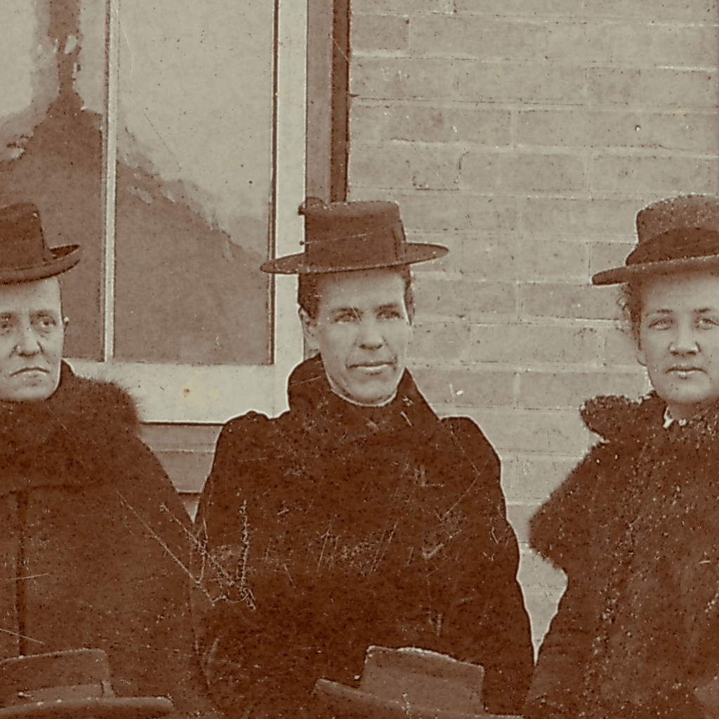 Sarah McQuarrie in Berlin (Kitchener) March 1900. On the left, Sarah (Madden) Bolwell. Right: Emma Hostetler.