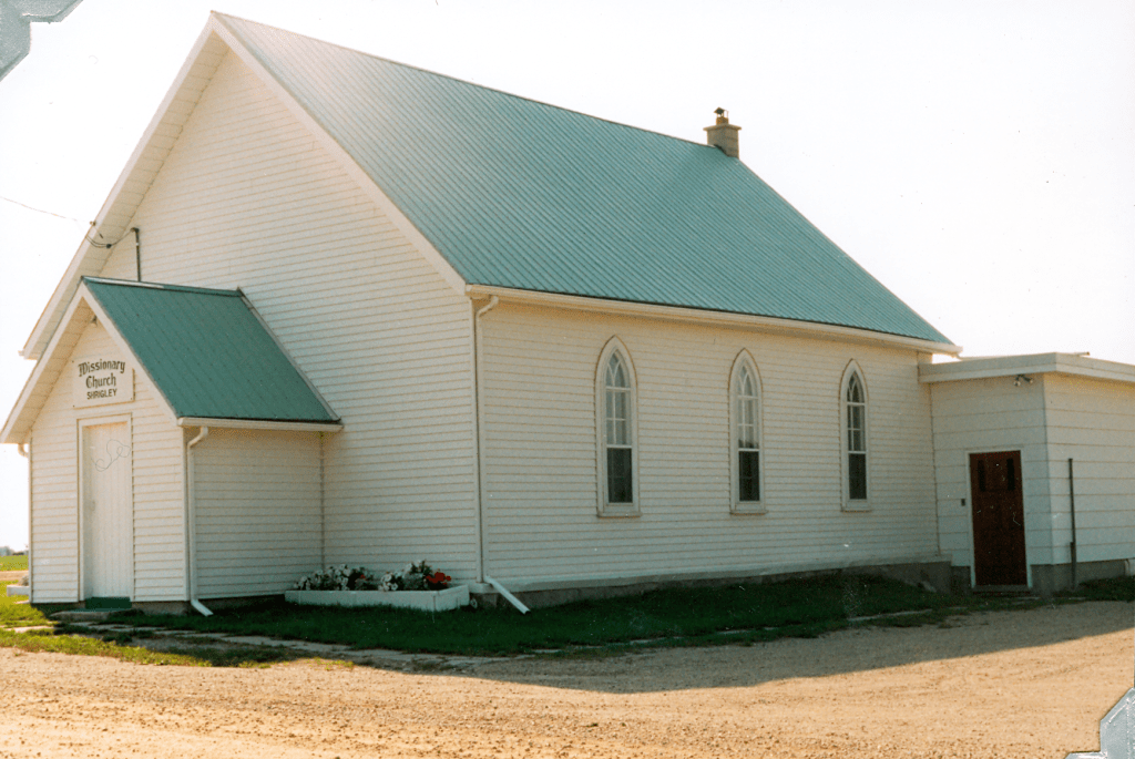 Banner: Shrigley Evangelical Missionary Church building ca 2000. Constructed 1893. Courtesy Glenn Menard Collection, MCHT.