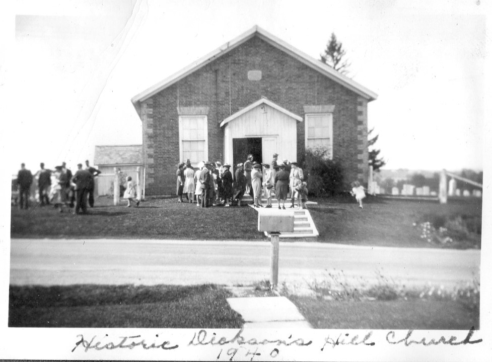 Preaching points. Some of these locations were probably homes or school houses, and only one building (Dickson Hill) was owned outright by the NMC; some were shared with other denominations. These 13 places were: four in Waterloo County: 1. Union (Roseville, North Dumfries Twp, building shared with the Evangelical Association), 2. Blair (North Dumfries Twp, shared with German Baptists), 3. Dundee (a building shared with German Baptists 1862 to 1870 in New Dundee village), Wilmot Twp) and 4. Breslau (Waterloo Twp, Waterloo Co); four in York County: 5. Vaughan (ie Schmitt’s Meeting House, Edgeley, Vaughan Twp shared with Mennonite Conference of Ontario), 6. Dixon’s (that is, Dickson Hill, Markham Twp) 7. Bethesda (Whitchurch Twp shared with others), 8. Wideman’s (probably also in Markham, perhaps using Wideman Meeting House, or Caspar Wideman’s house); one in Lincoln County: 9. Jordan (The Twenty, Louth Twp using a Mennonite Conference building); one in Oxford County: 10. Blenheim (Blenheim Twp, bordering Waterloo); and one in Ontario County (now Durham Region): 11. Scott (Scott Twp). Two locations remain unidentified: 12. Hoffman’s, and 13. Saloon. The other two were visited less often: 14. St Jacob’s (Woolwich Twp, Waterloo) and 15. Hay (Hay Twp, Huron County). Most of these locations have no photographic record in the MCHT except the building of Schmitt’s, (now in Black Creek Pioneer Village, Toronto), Dickson Hill, Bethesda, Wideman’s, and possibly the building in Blair, built with German Baptists, long since sold off. That building is currently a small private school.