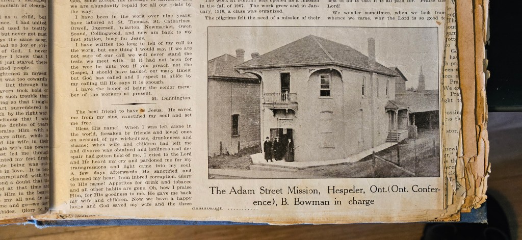 MBiC city mission on Adam Street, Hespeler, ON in the Gospel Banner about 1911. Courtesy: Fannie Raymer scrapbook, Missionary Church Historical Trust.