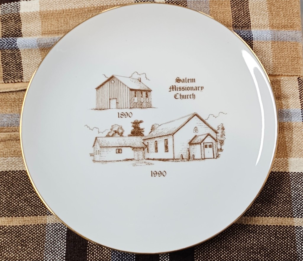 Church plates were used in a specific period in the EMCC: mostly in the 1970s and early 1980s. Then they mostly went out of fashion. There was an earlier period of commemorative church plate use in North America with plates ordered from Germany in the 1890s but the Mennonite Brethren in Christ did not seem to participate in that fad. I suspect it was because the plates were used as fund-raisers, and the MBiC discouraged worldly fund-raising customs. We favoured direct donation by members (“The Lord loves a cheerful giver”-my emphasis.) According to the Presbyterian website the practice was revived in the USA in the 1950s. Apparently by the 1970s, EMCC members had lost the prejudice or the theology that prevented churches selling plates.