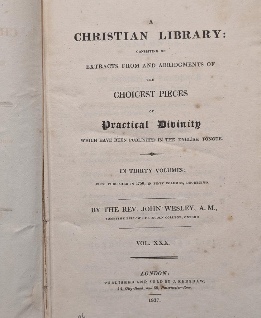 John Wesley started it. As early as 1744, Wesley started urging his “Assistants” to be reading for improving their preaching.3 He made a list of authors they should read, a mix of Greek and Roman classical writers, Church Fathers, more recent preachers’ sermons and German mystics and of course Methodist tracts of the time. It was quite a heavy program for men who were not university students. The next year he doubled the list and included English poets such as Spenser, Milton and Sir John Davies (1569-1626). Again in 1746 he changed the suggested list with many more devotional writings, biographies and Anglican doctrinal helps. He eventually condensed and published into 50 volumes (!), works of all kinds for his preachers, in addition to the ever-growing editions of standard sermons, hymnbooks, Notes on the New and Old Testaments and various tracts on controversial topics such as A Plain Account of Christian Perfection (1766, 1777). Eventually, the English Wesleyans required their candidates to read Wesley’s standard sermons and the Notes on the NT, and wanted to see a list of reading done, perhaps voluntarily selected. While a probationer, the preacher was “to present a list of the books read during the year” to the superintendent of the circuit.4