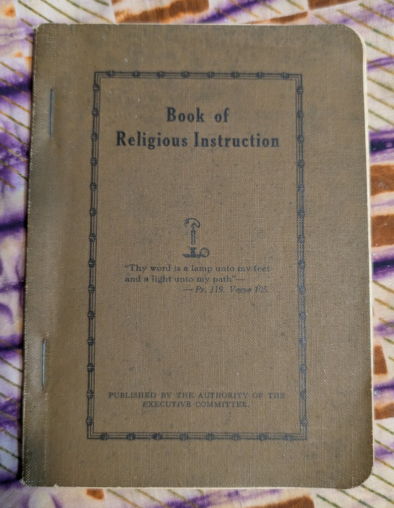 1Samuel Goudie, ed, with Alvin Traub, Book of Religious Instruction ([Kitchener,] ON: Executive Committee of the Mennonite Brethren in Christ Church, 1933) p 3. Traub, Goudie and Silas Cressman had been authorized to produce the catechism by the 1924 MBiC General Conference.